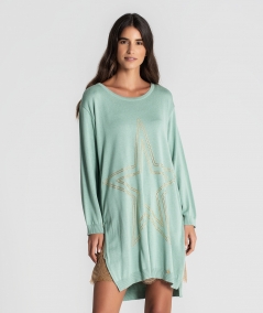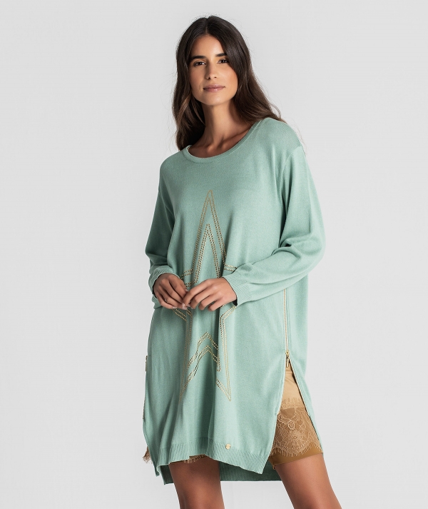 Túnica decote redondo com fechos laterais e motivo estrela