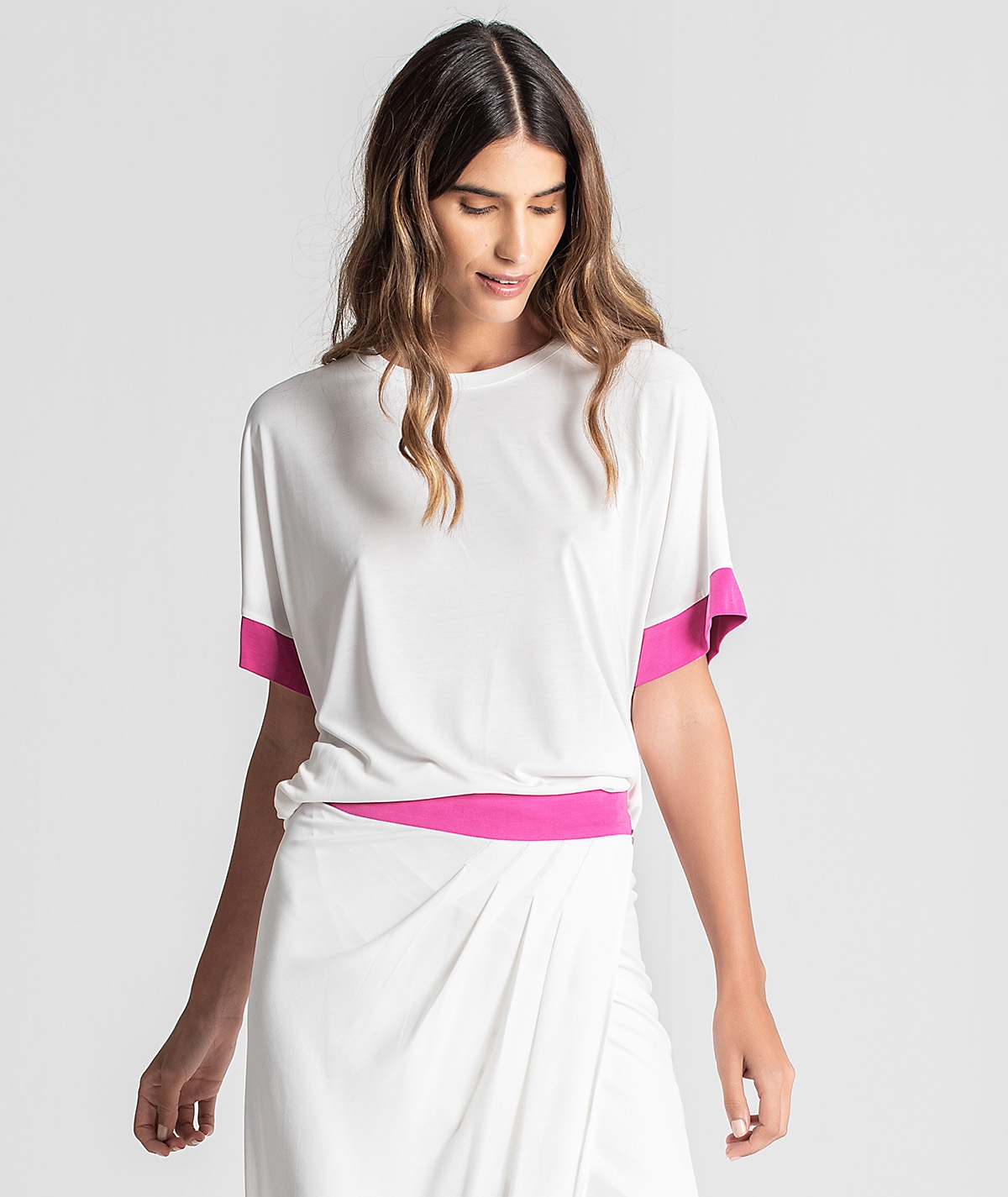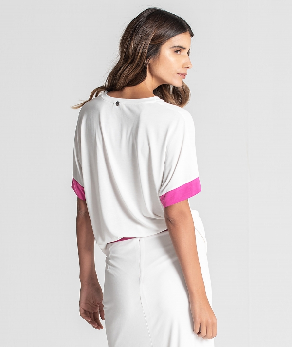 T-shirt decote redondo bicolor.