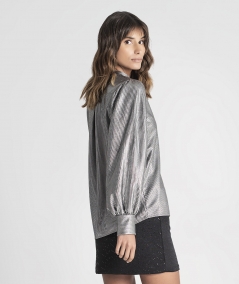 Camisa brilho com botões na frente.