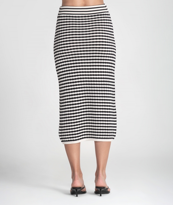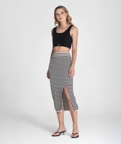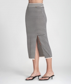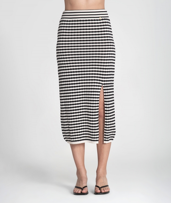 Skirt with stripes and perforations. Front opening and adjustable waist with elastic.