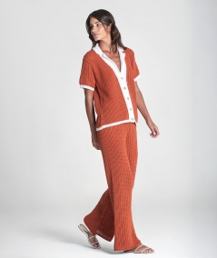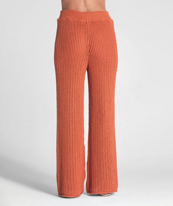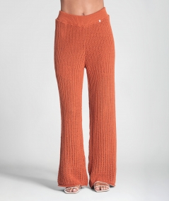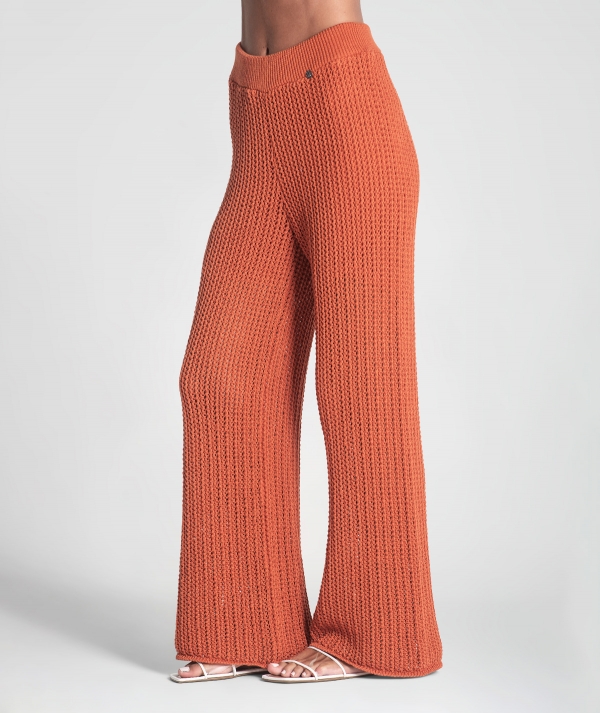 Wide perforated trousers. Adjustable at the waist with elastic.